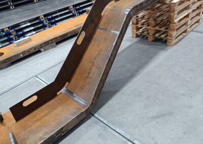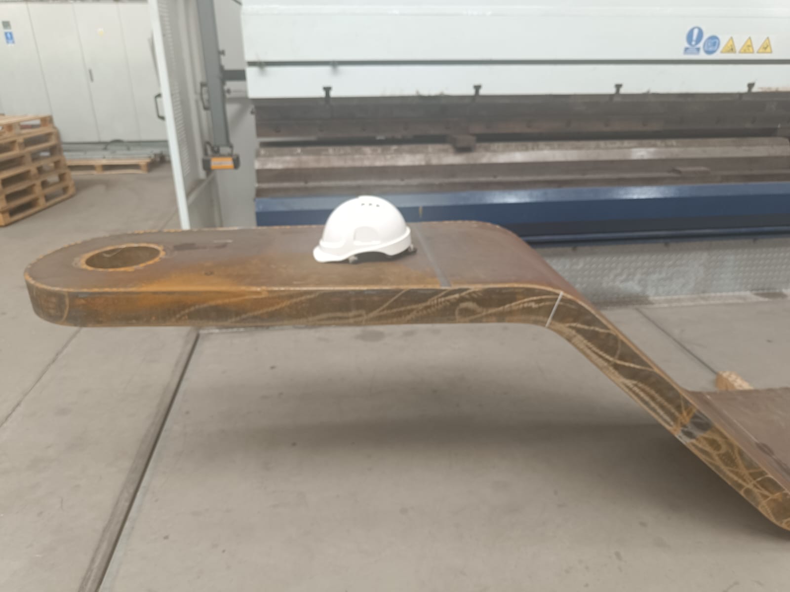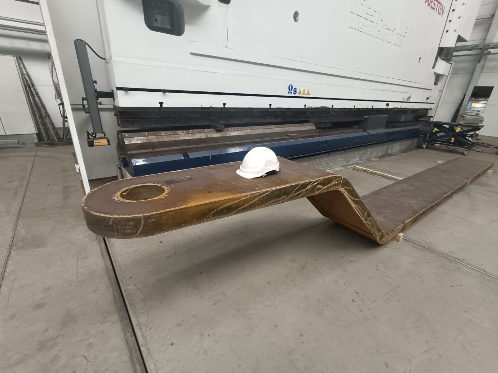 Gięcie zostało wykonane na zimno na naszej najsilniejszej prasie krawędziowej o nacisku prawie 3000 ton i długości 9 metrów.